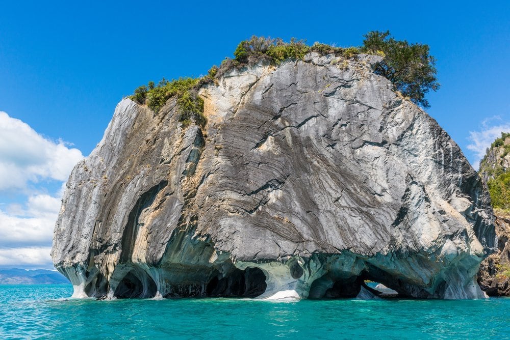 Este lugar se encuentra oculto debajo de la conocida península de Chile específicamente en el atractivo Lago General Carrera, allí se localiza las maravillosas Cuevas de Mármol, las aguas de color turquesa y la aguamarina que resaltan por la luz del sol sobre la cubierta de las cuevas, creando un extraordinario reflejo que no se logra apreciar en ningún otro lugar del mundo.